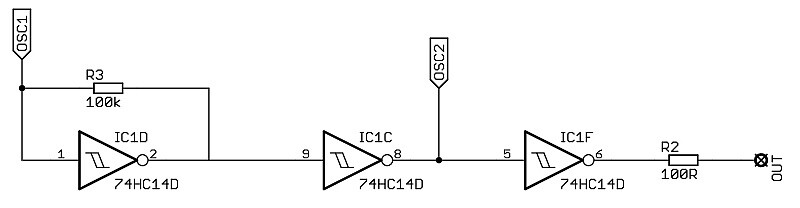 Der 74HC14 enthält invertierende Schmitt‑Trigger‑Gatter.