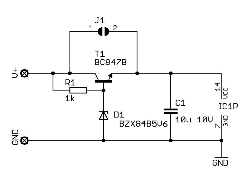 Dadurch wird der Linearregler auf der Platine nicht benötigt.