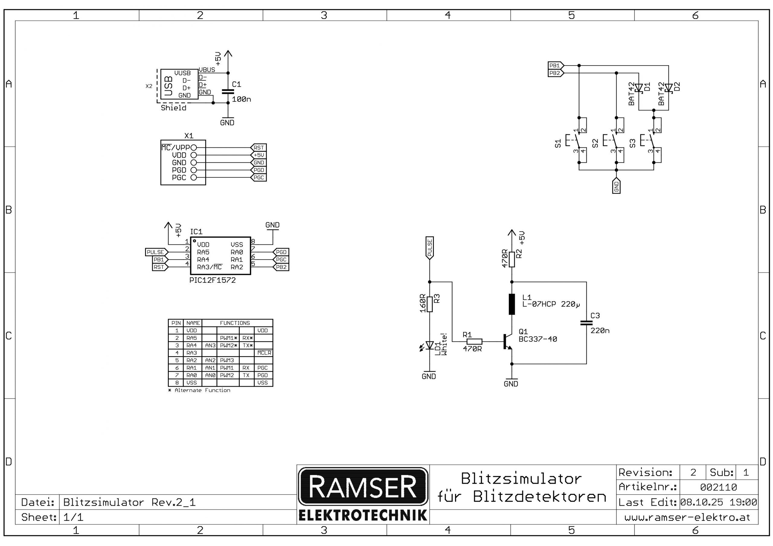 Der Blitzsimulator emuliert die charakteristische Funkwelle eines Blitzes durch das schnelle Entladen einer Spule über einen Transistor. Diese magnetische Welle ähnelt dem Signal eines echten Blitzes und wird von Blitz- oder Gewitterdetektoren erkannt.